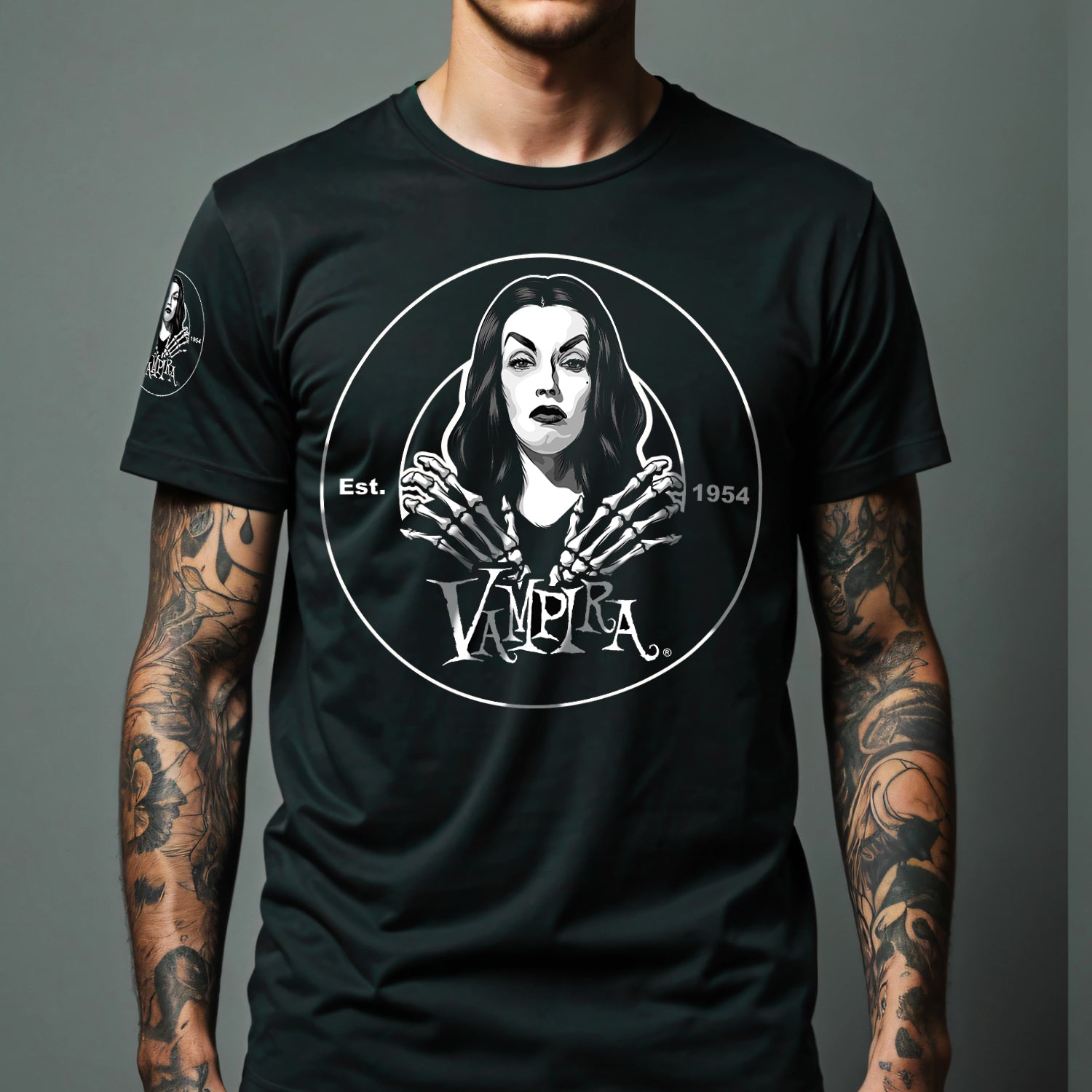 Our Vampira Ghoul Gang Badge Tee pays tribute to the original queen of horror â Vampira â and her 1950s Ghoul Gang fan club. This isnât just a shirt; itâs your membership card to the dark side of coffee and culture.